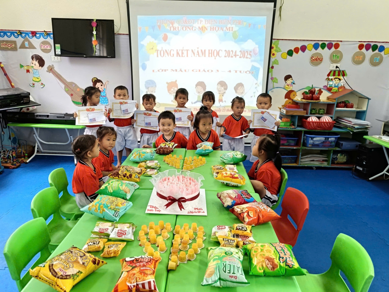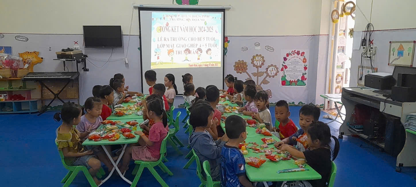“Trưa hè gió thổi Hoa phượng lung lay Cánh hoa rụng bay Như bầy bướm lượn” Vậy là những cánh phượng đã đỏ rực, những tiếng ve kêu rộn rã báo hiệu hè về cũng là lúc báo hiệu kết thúc một năm học hăng say. Chiều ngày 23/5/2025 trường mầm non Họa Mi tổ chức lễ tổng kết năm học 2024 – 2025. Buổi lễ diễn ra với nhiều cảm xúc khó tả, nhất là các bé chuẩn bị xa mái trường mầm non, xa các cô giáo đã hằng ngày chăm sóc các em từng bữa ăn, giấc ngủ, dạy các em từng điệu múa, lời ca, nuôi dưỡng các em có một tâm hồn cao đẹp từ khi các em đang là mầm xanh tương lai của đất nước. Cả cô và trẻ đều đã để lại trong lòng nhau những tình cảm yêu thương không thể nào quên. Một năm học là khoảng thời gian không quá dài nhưng cũng đủ ghi lại biết bao kỷ niệm đẹp của cô và trò. Một năm học khép lại cũng là lúc các cô giáo nhìn lại những thành quả của mình. Những ngày tháng miệt mài bên trang giáo án, những bài giảng sáng tạo, lý thú, những ánh mắt ngây thơ hồn nhiên, những cái nhìn âu yếm của cô và trò. Tất cả đã tạo thành một dấu ấn của cô và trò trường Mầm non Họa Mi. Buổi lễ của các con được diễn ra ngay tại lớp học của mình. Các con đã rất tự tin và hào hứng cùng hát với cô những ca khúc quen thuộc, trò chuyện vui vẻ! Sau đó các con còn được nhận phần thưởng xứng đáng sau những nỗ lực của các con suốt một năm học và cùng phá cỗ liên hoan tổng kết năm học. Một năm học đã khép lại. Có lẽ đây là khoảng thời gian mà các bé mẫu giáo 5 tuổi sẽ ghi nhớ mãi mãi khi các con sẽ chia tay mái trường mầm non để chuẩn bị lên lớp 1. Buổi lễ này đã đánh dấu thời khắc kỳ diệu và long trọng nhất trong cuộc đời các con, cuộc sống đang mở ra mênh mông phía trước, các con hãy dũng cảm chọn cho mình con đường để trở thành những con người chân chính có nghĩa, có tình và giầu trí tuệ. Các con sẽ hòa nhập vào xã hội, tạo lập cuộc sống của mình và cùng chung tay dựng xây quê hương đất nước! Một năm học đầy nỗ lực và thành công đã kết thúc, chúc các bạn nhỏ có một kỳ nghỉ hè vui khỏe, bổ ích. Riêng các bạn lớp 5- 6 tuổi chuẩn bị tốt tâm thế sẵn sàng vào lớp 1 thật vững vàng. Chúc cho tập thể sư phạm trường Mầm non Họa Mi chúng ta ngày càng lớn mạnh! Dưới đây là một số hình ảnh trong buổi Tổng kết năm học- lễ ra trường cho các bé 5-6 tuổi trường mầm non Họa Mi.