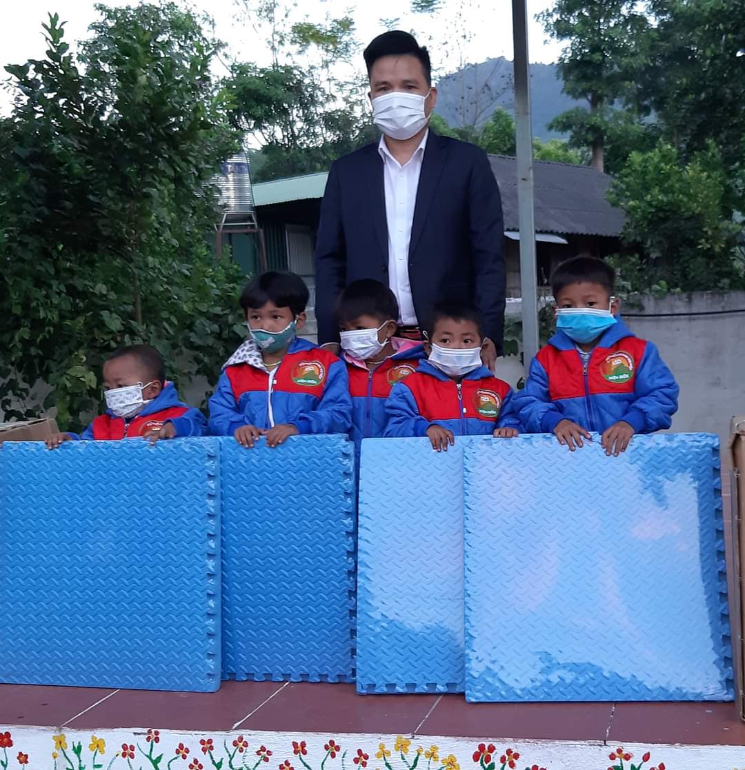 Anh Phúc và đoàn thiện nguyện ở Hfa Nội thăm trao tạng 100m thảm xống cho các bé