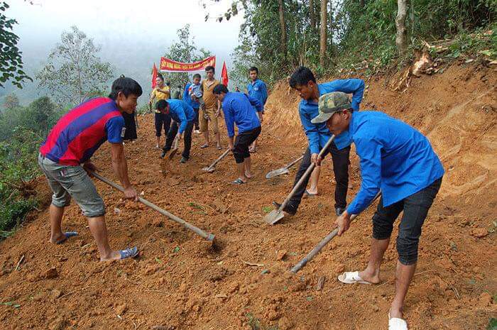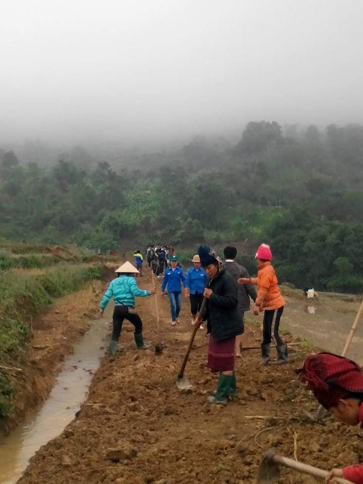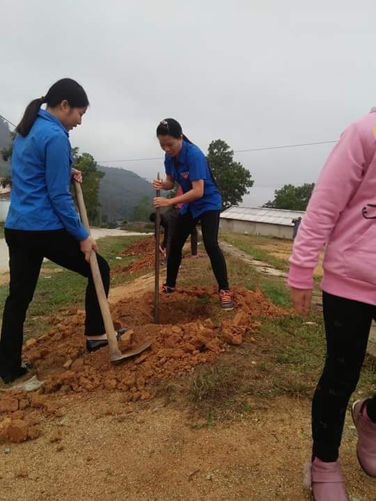 Chi đoàn trường tham gia lao động cùng Đoàn xã