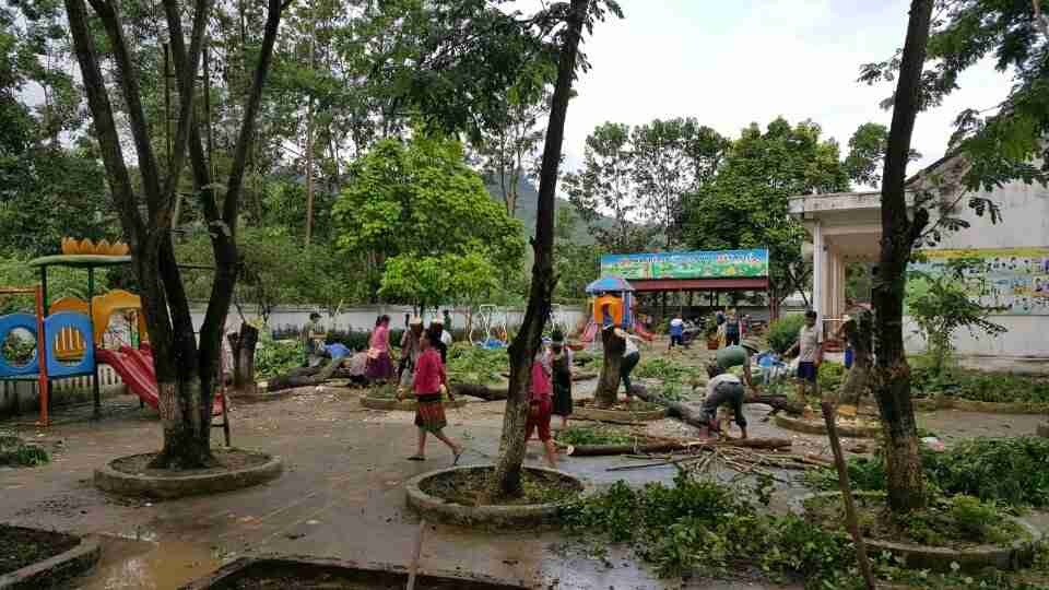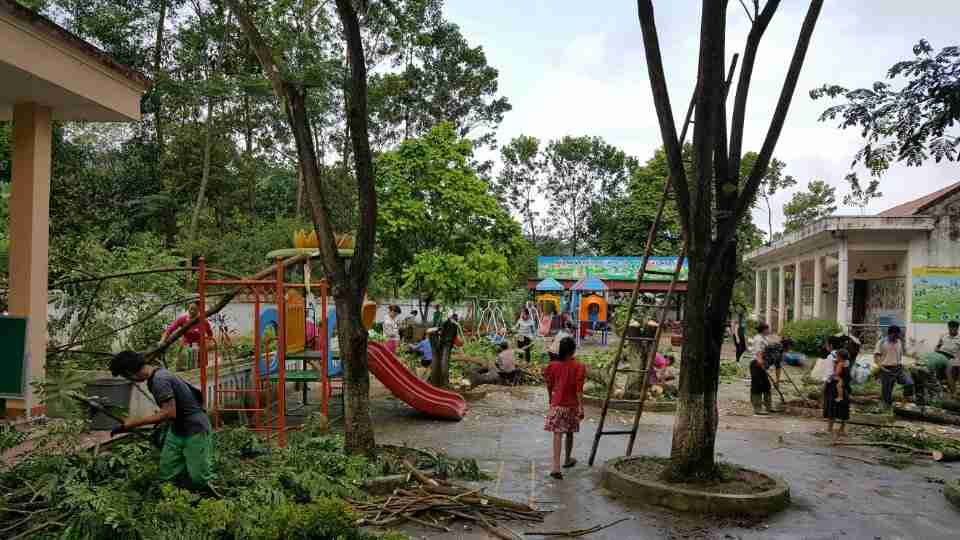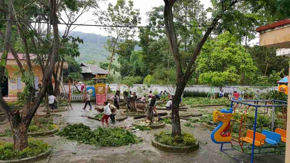 Nhà trường phối kết hợp với phụ huynh lao động vế sinh trường, lớp chuẩn bị cho năm học mố 2019-2020