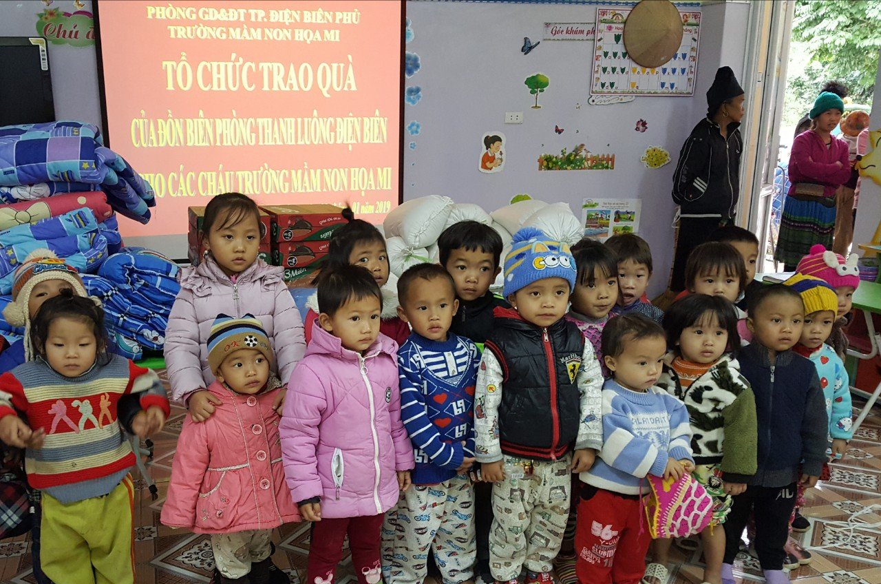 Trao quà cua đồn biên phong Thanh Luông cho các cháu trường MN Họa Mi