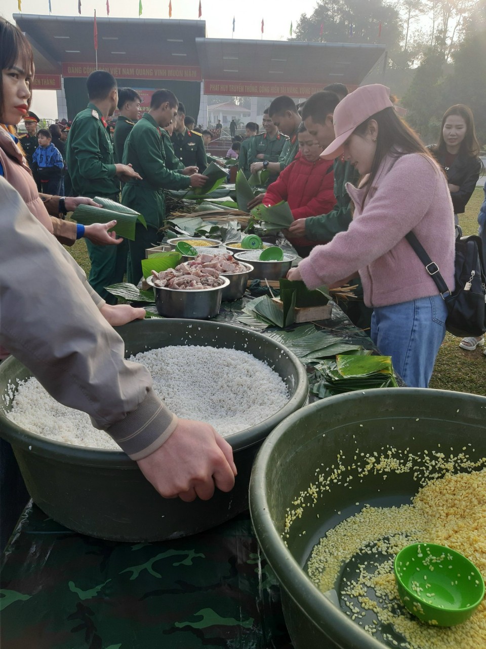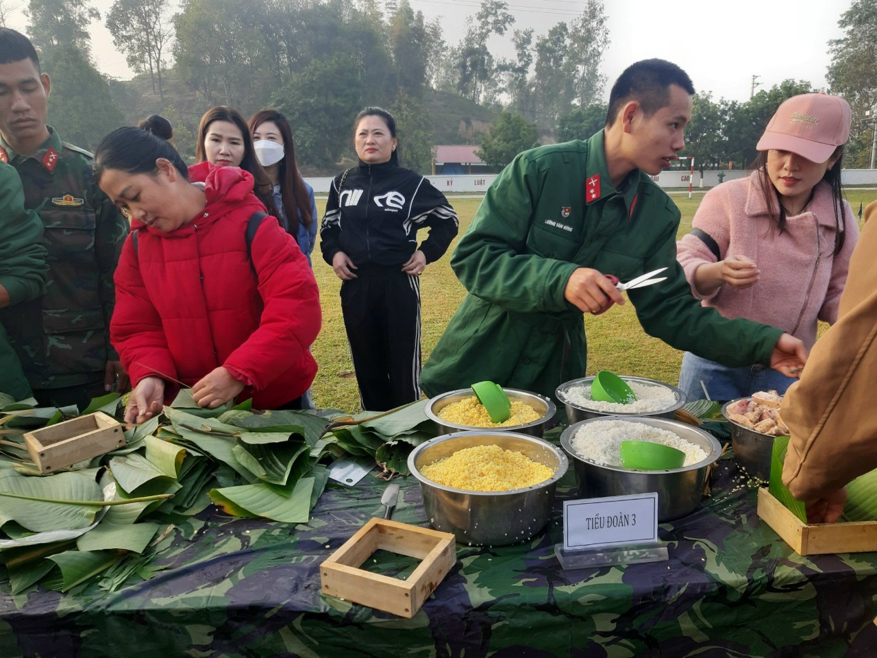 Tham gia hội thi gói bánh chưng tại Trung đoàn 82