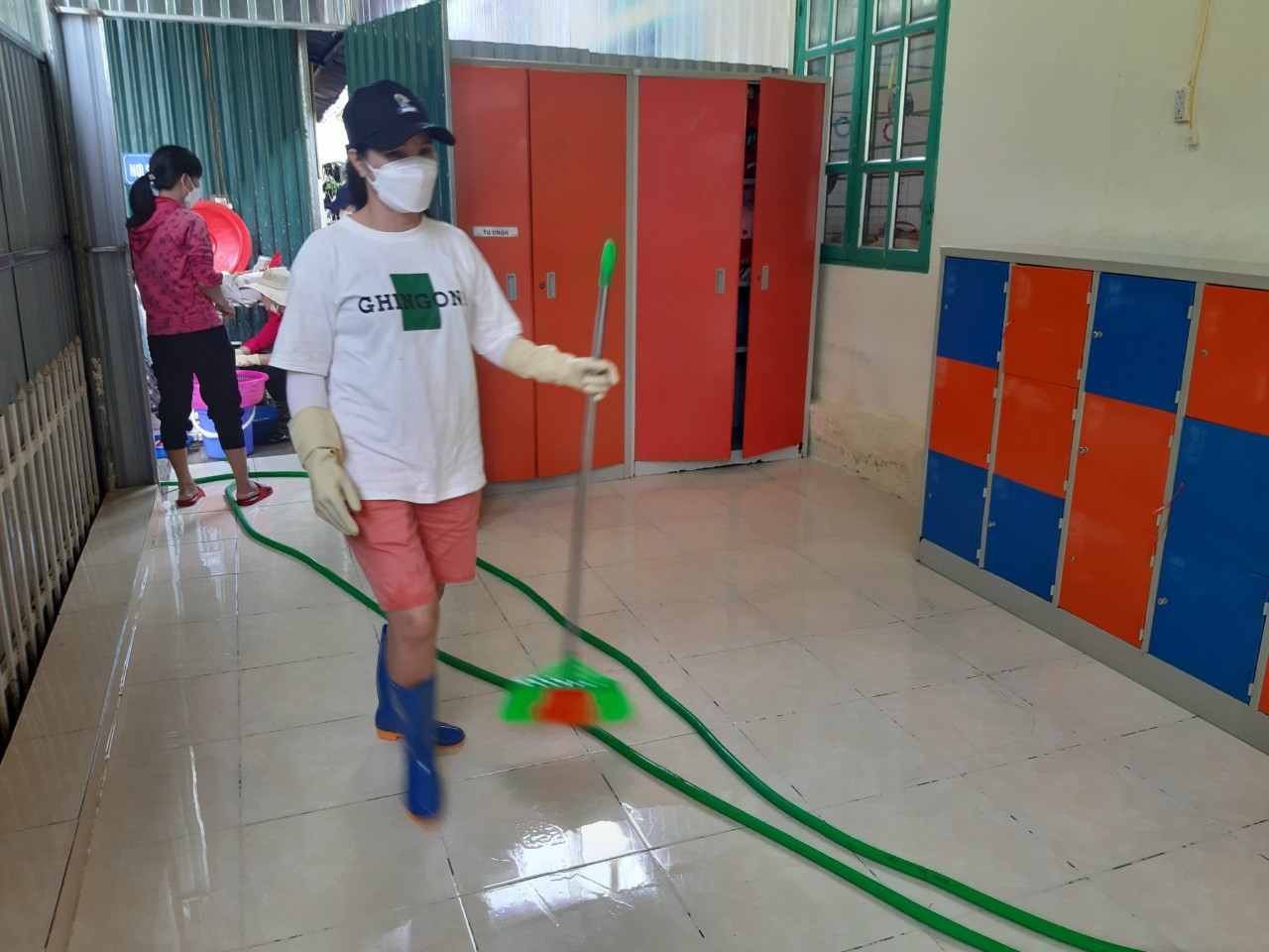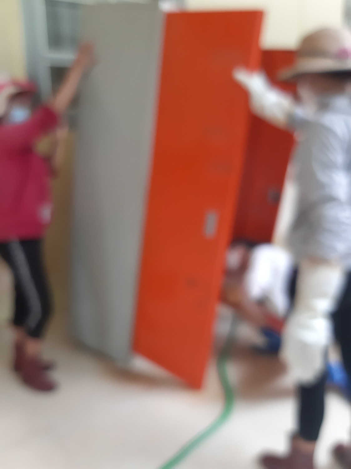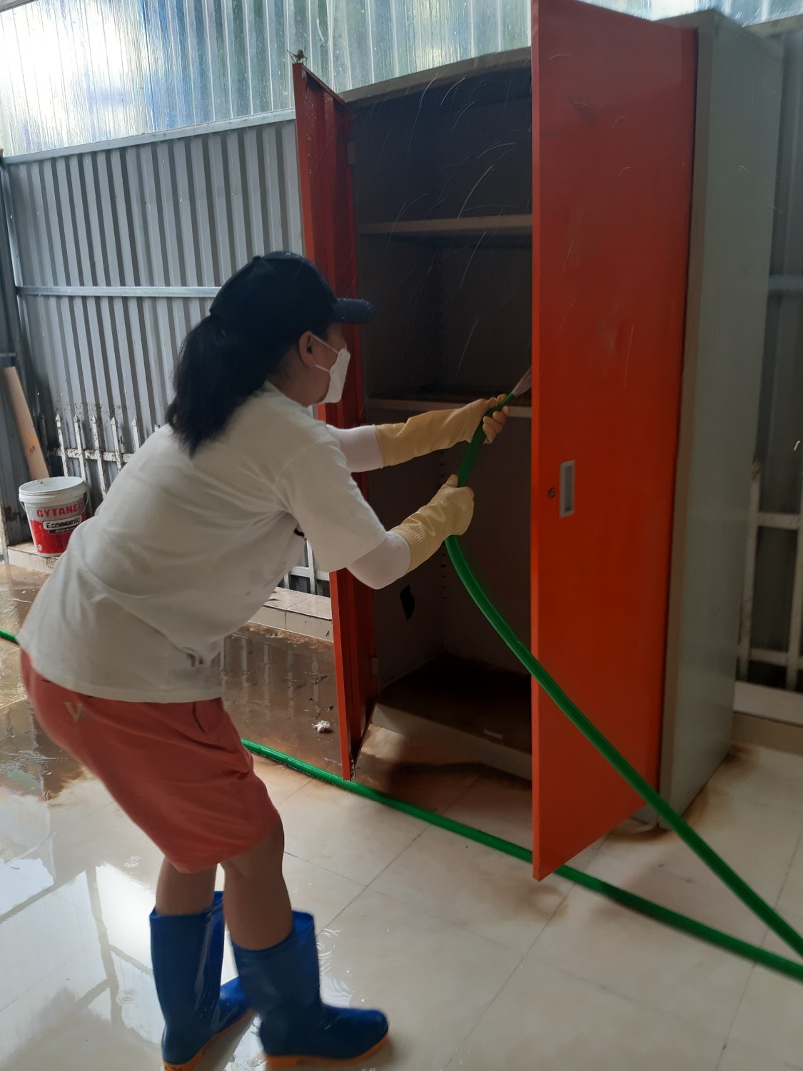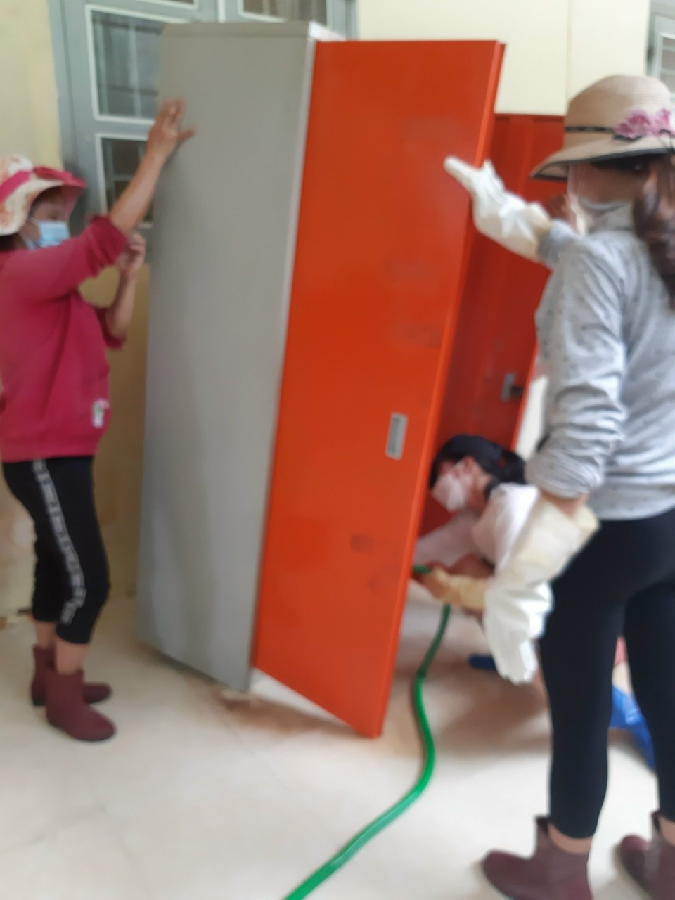Trường MN Họa Mi giúp trường MN số 1 Pa Khoang khắc phục lũ lụt sau mưa