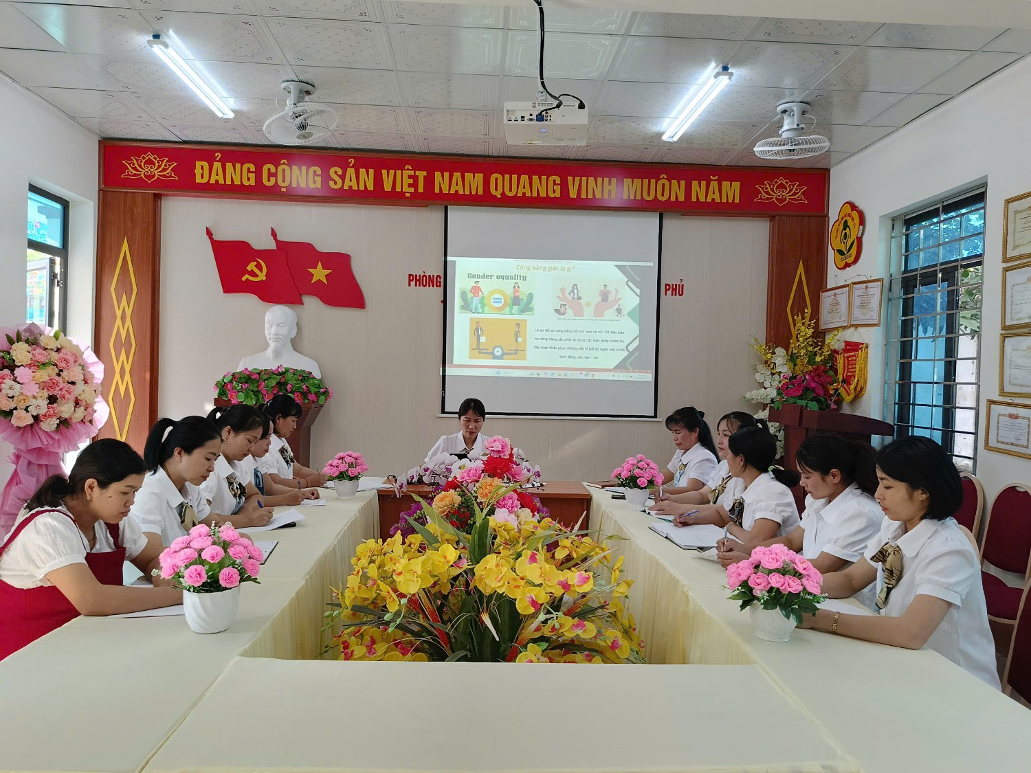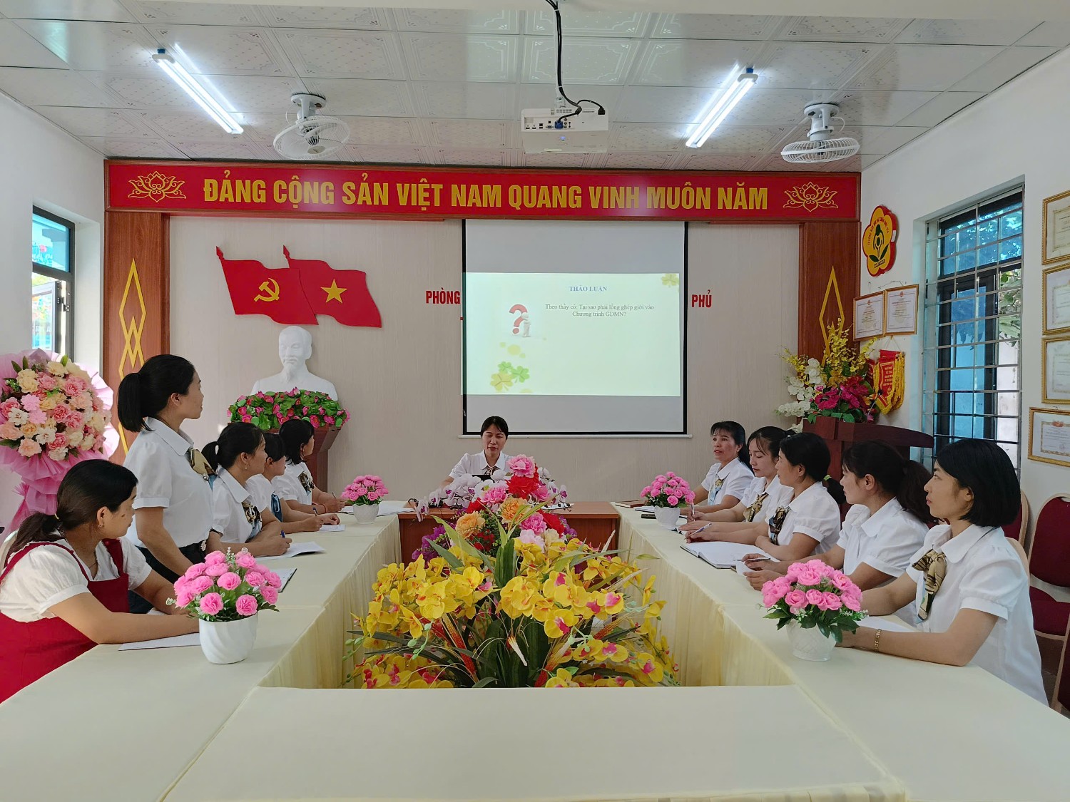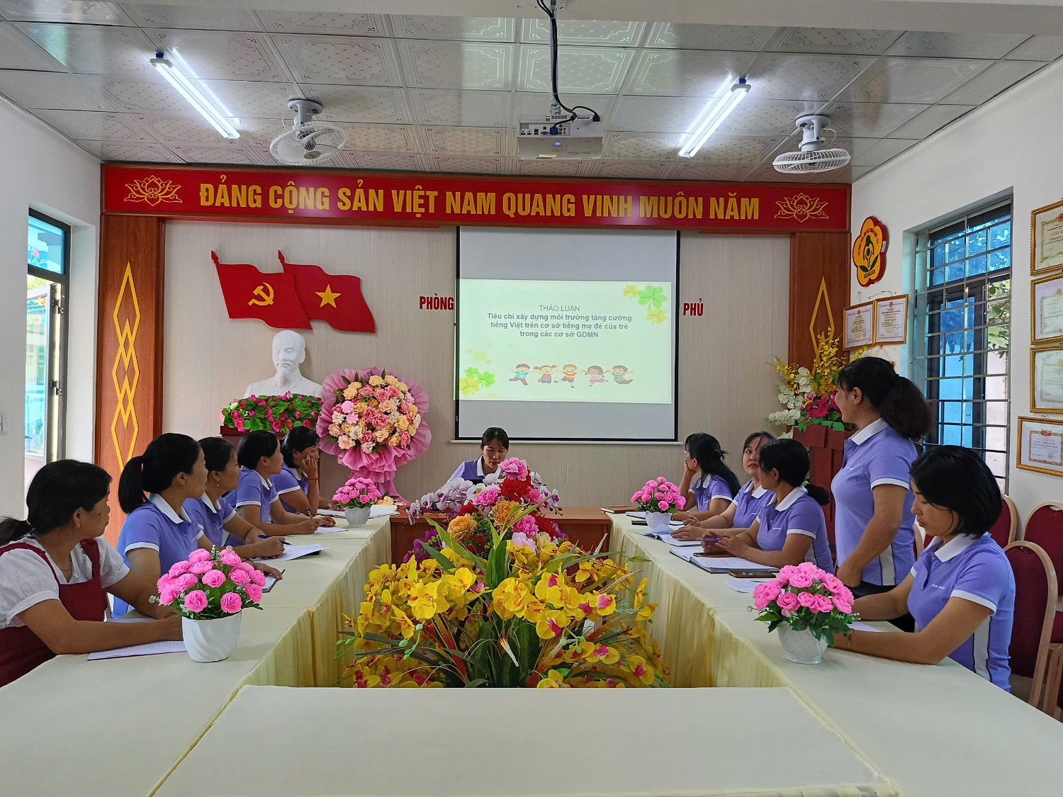 Tập huấn chương trình tôi yêu Việt Nam, lồng ghép giới, tăng cường tiếng việt của trường MN Họa Mi
