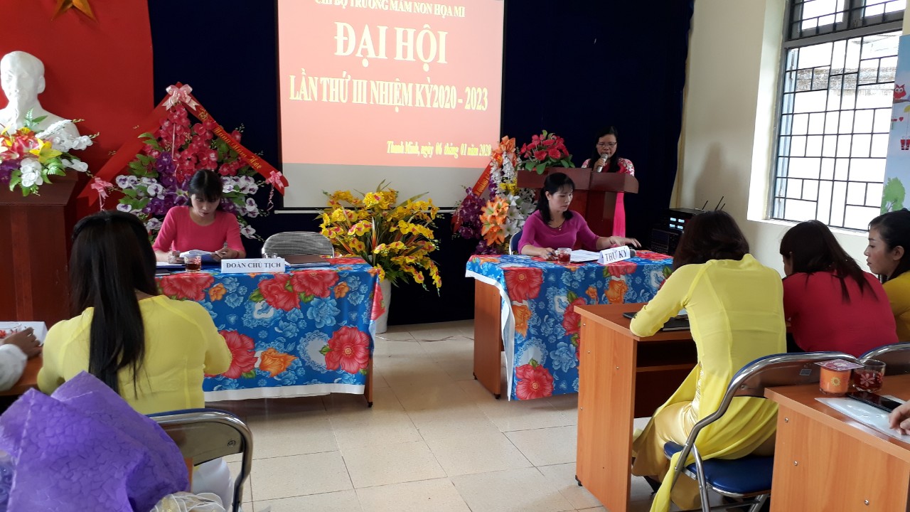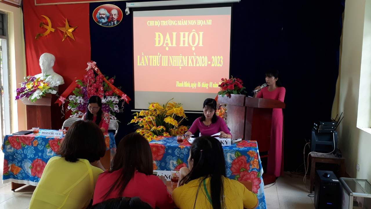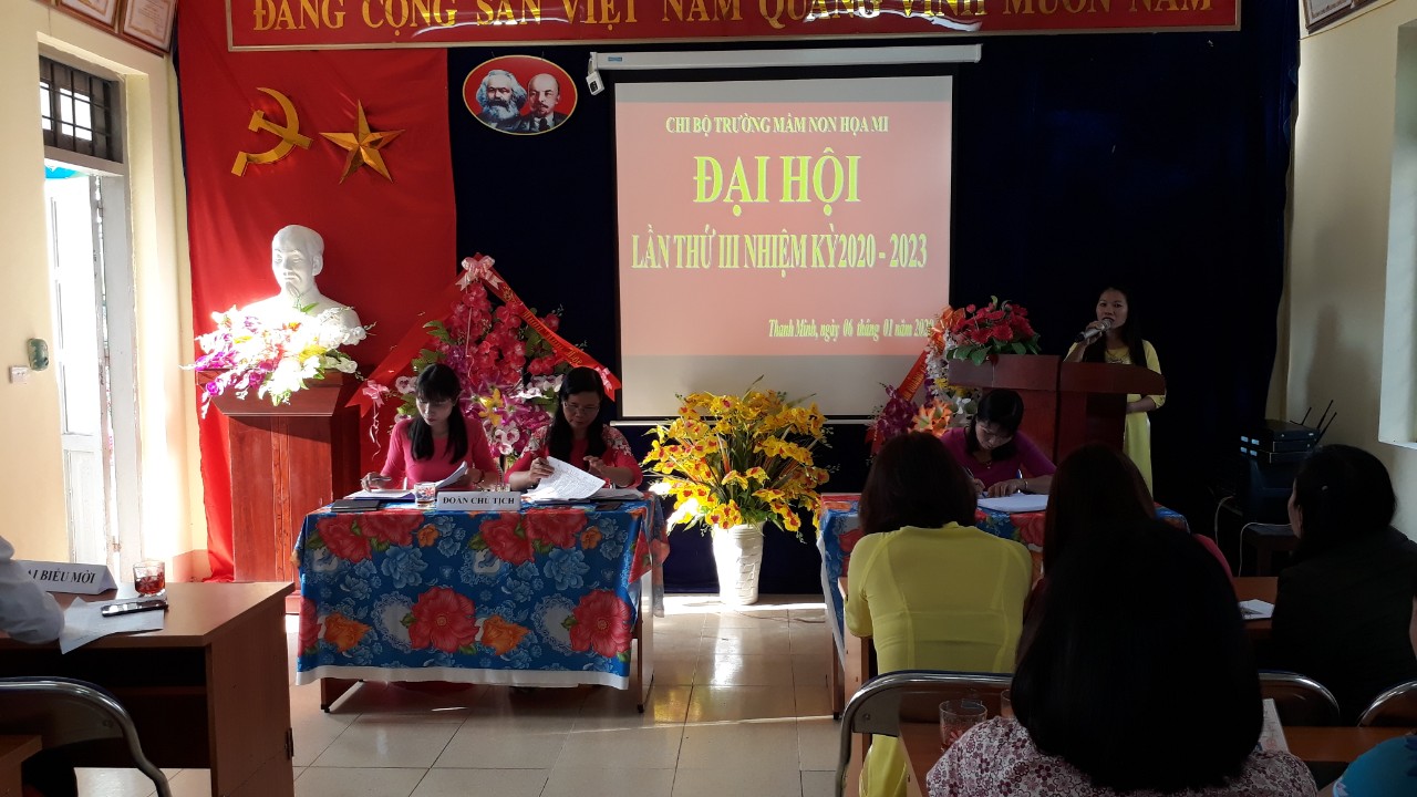 Được sự chỉ đạo của Ban thường vụ Đảng ủy xã Thanh Minh, Sáng ngày 06 tháng 01 năm 2020, Chi bộ trường mầm non Họa Mi đã long trọng tổ chức Đại hội chi bộ lần thứ III - nhiệm kỳ 2020 - 2023, nhằm đánh giá lại đánh giá kết quả hoạt động của nhiệm kỳ 2017- 2020 và đề ra phương hướng, mục tiêu, nhiệm vụ trong nhiệm kỳ 2020 – 2023.