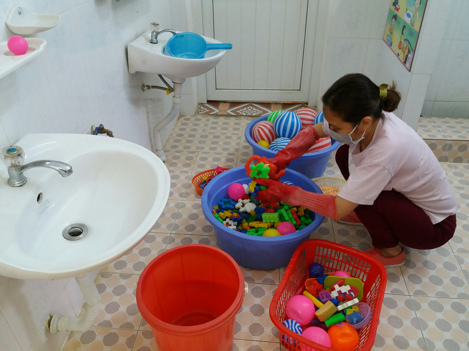 Phối hợp với y tế xã Thanh Minh làm tốt công tác vệ sinh trường lớp đảm bảo khuôn viên trường, lớp học thông thoáng, sạch sẽ. tiêu độc khử trùng sàn nhà lớp học, đồ dùng đồ chơi thiết bị dạy học