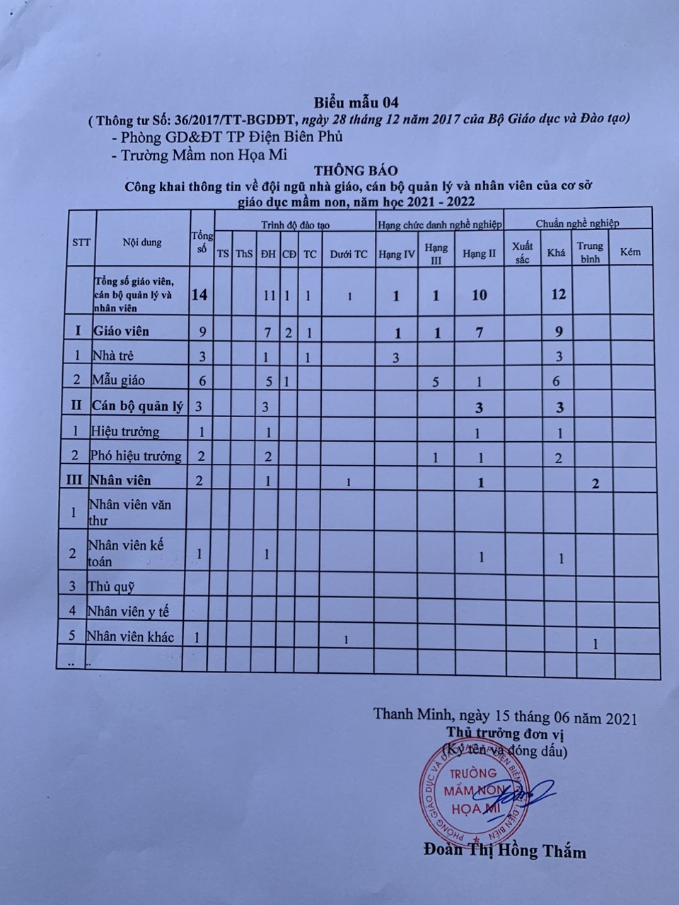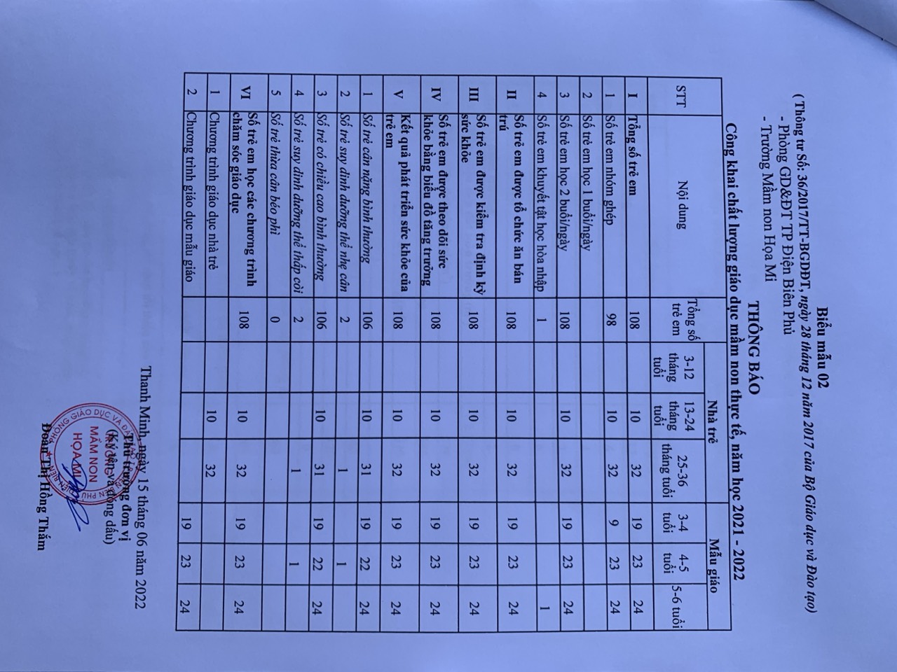 NỘI DUNG THỰC HIỆN CÔNG KHAI CỦA TRƯỜNG MẦM NON HOẠ MI 2022-2023