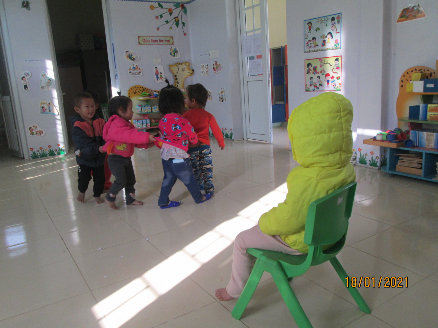 Mặt khác ở điểm trường cũng đã rèn các con làm việc theo nhóm, đoàn kết và kỷ luật, chơi vui vẻ bên nhau qua các trò chơi dân gian như rồng rắn lên mây, kéo cưa lừa xẻ, luồn luồn cổng dế, kéo co… Trẻ đến trường được chơi, được học bên các bạn “mỗi ngày đến trường là một ngày vui”