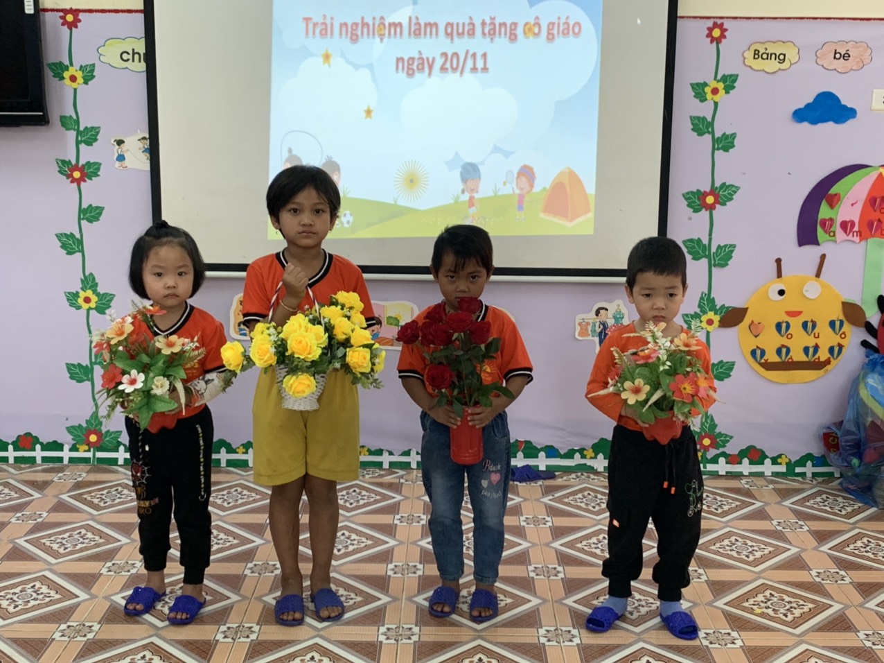 Cũng dịp này, sáng ngày 14/11/2022 lớp mẫu giáo ghép 4-6 tuổi Trung tâm,Trường mầm non Họa Mi đã tổ chức hoạt động trải nghiệm chào mừng ngày Nhà Giáo Việt Nam với chủ đề “Cô giáo của con” trong bầu không khí tràn ngập sắc màu và đầy cảm xúc của các cô giáo, các bậc phụ huynh và các bé. Đây là hoạt động trẻ được tự do sáng tạo theo ý thích và khả năng của mình. Thông qua hoạt động nhằm tôn vinh, thể hiện tình cảm biết ơn, kính trọng với các cô giáo – người mẹ hiền thứ 2 của trẻ. Điểm nhấn trong buổi Hoạt động trảinghiệm là những tấm bưu thiếp, những bó hoa, lãng hoa, những bức tranh làm từ những nguyên vật liệu dễ kiếm dễ tìm, trẻ tự cắt, vẽ để tạo ra những bông hoa xinh xắn để tặng cô giáo nhân dịp 20/11 do các bé trổ tài.