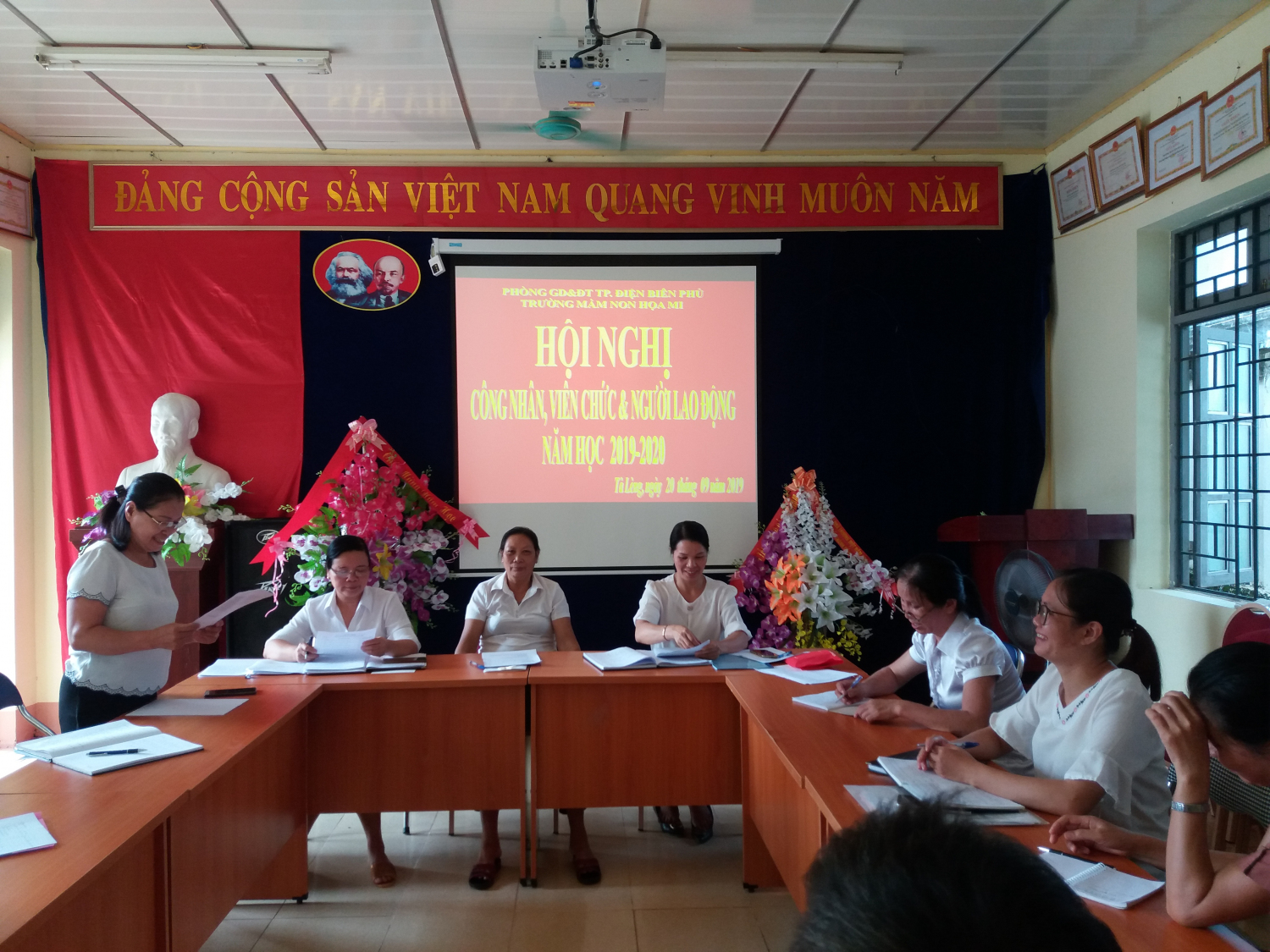 Chiều ngày 20/09/2019, Trường mầm non Họa Mi tổ chức Hội nghị công nhân viên chức năm học 2019-2020, nhằm đánh giá, tổng kết kết quả thực hiện nghị quyết năm học 2018-2019, đề ra phương hướng cho năm học 2019-2020. Đây là Hội nghị được tổ chức thường niên với sự có mặt của tập thể cán bộ lãnh đạo và toàn thể công nhân viên chức trong toàn trường.