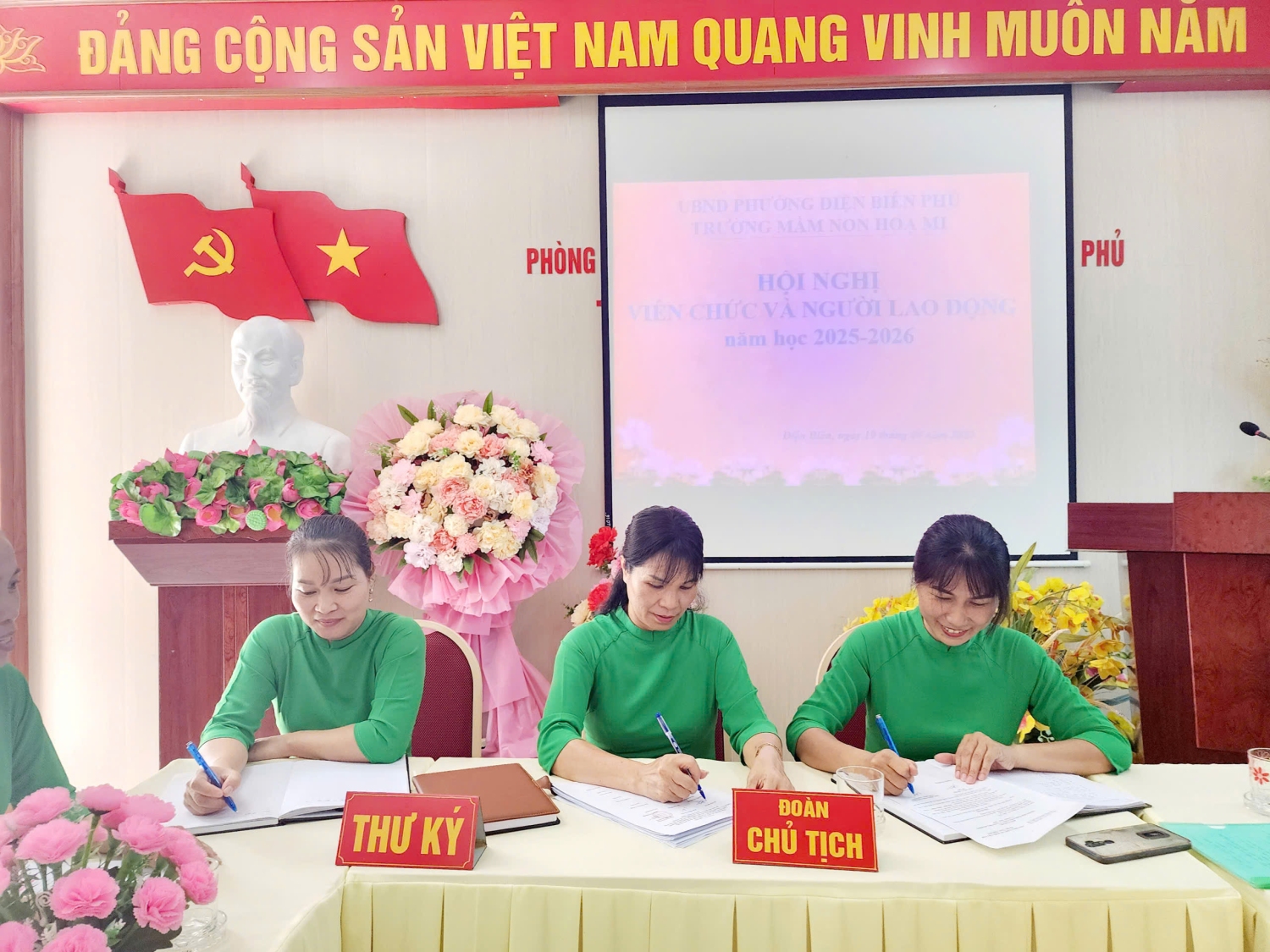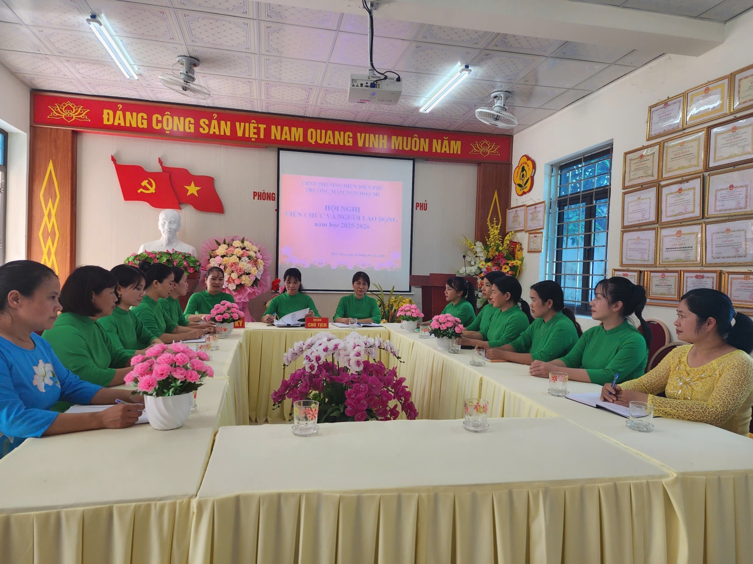 Chiều ngày 19/09/2025 trường Mầm non Hoạ Mi, phường Điện Biên Phủ đã tổ chức Hội nghị viên chức và người lao động năm học 2025 -2026. Đây là dịp quan trọng để toàn thể viên chức, người lao động trong nhà trường cùng đánh giá, nhìn lại những kết quả đã đạt được trong năm học 2024-2025, đồng thời đề ra phương hướng, nhiệm vụ và giải pháp thực hiện cho năm học 2025-2026