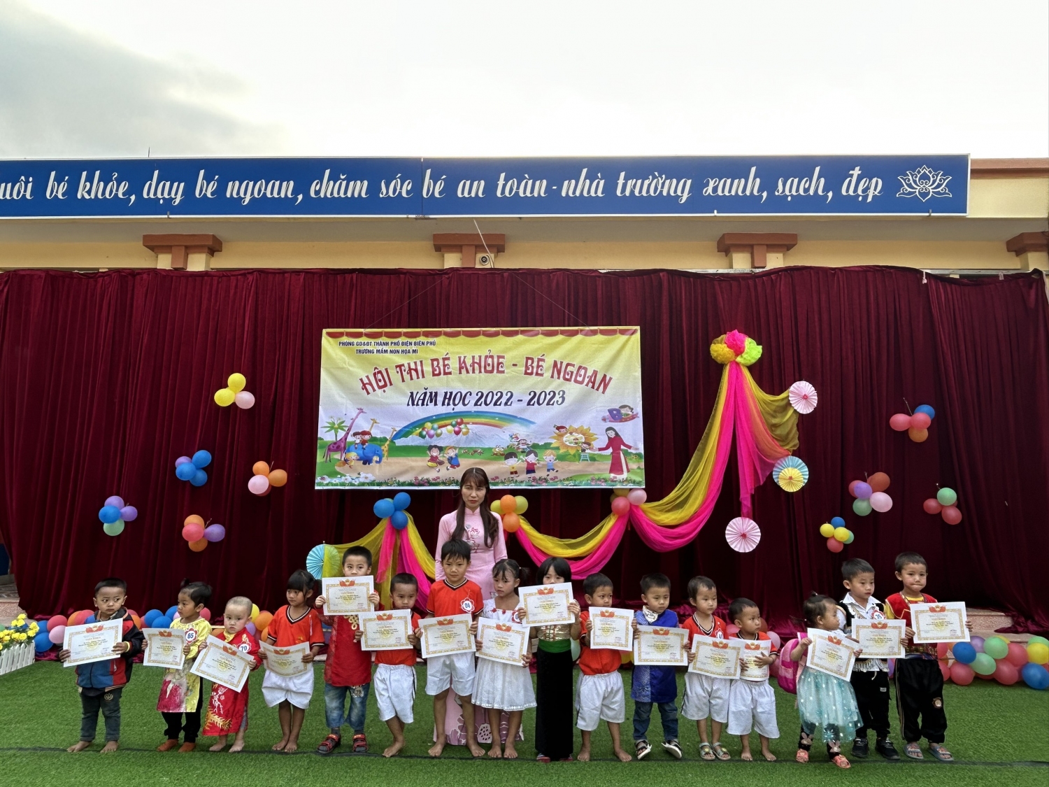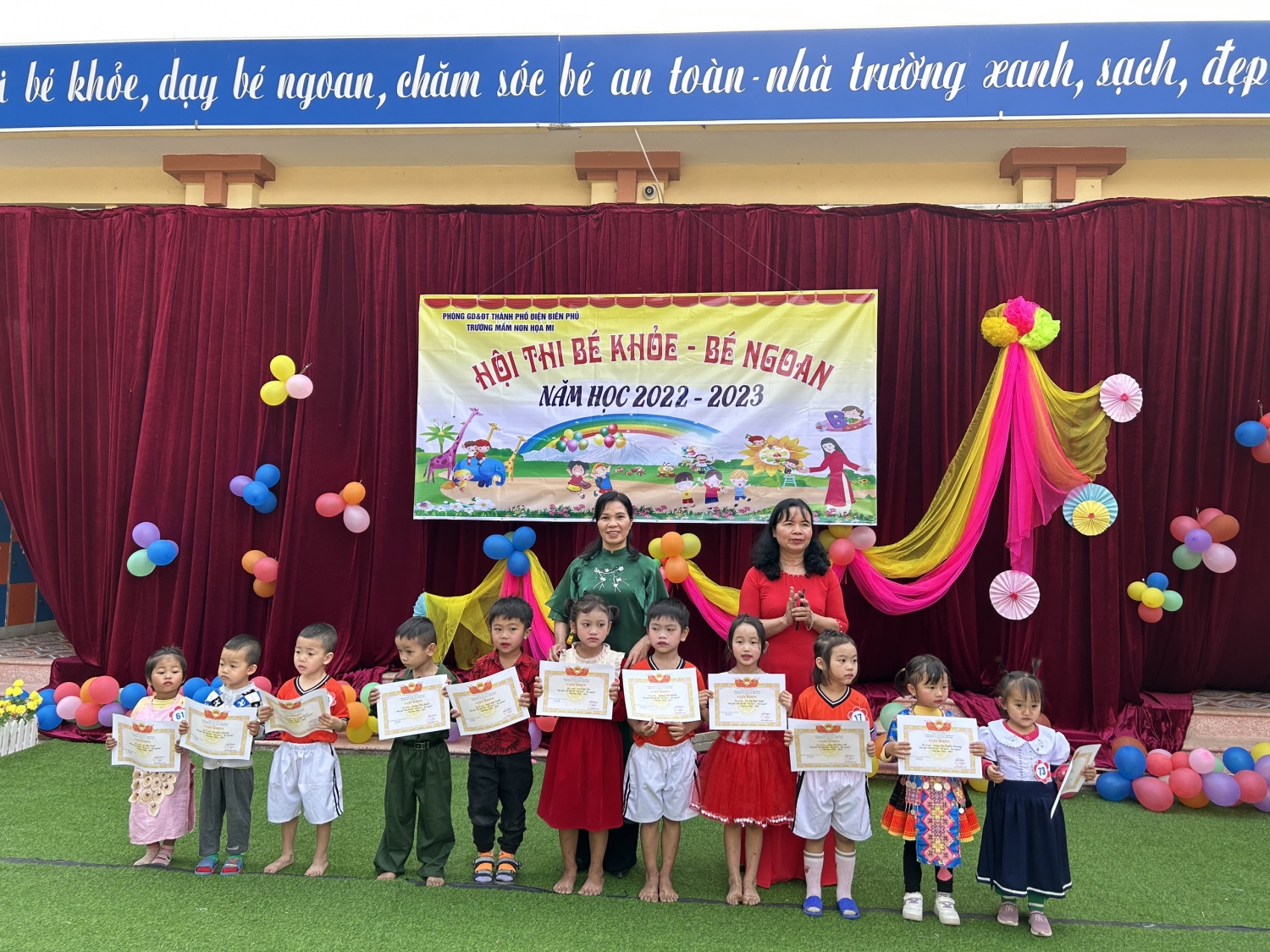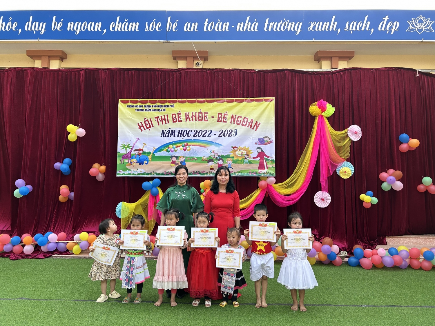 Sau 02 ngày diễn ra hội thi có rất nhiều phần thi ấn tượng của các bé, kết quả các bé giành được 8 giải nhất, 14 giải nhì, 20 giải ba và 35 giải khuyến khích. Lễ tổng kết và trao giải được tổ chức vào cuối ngày 24/2/2023 với không khí vui tươi phấn khởi, đặc biệt là niềm vui của các bé và các bậc phụ huynh khi được thấy con em mình gặt hái thành quả sau những giờ hoạt động học tập.