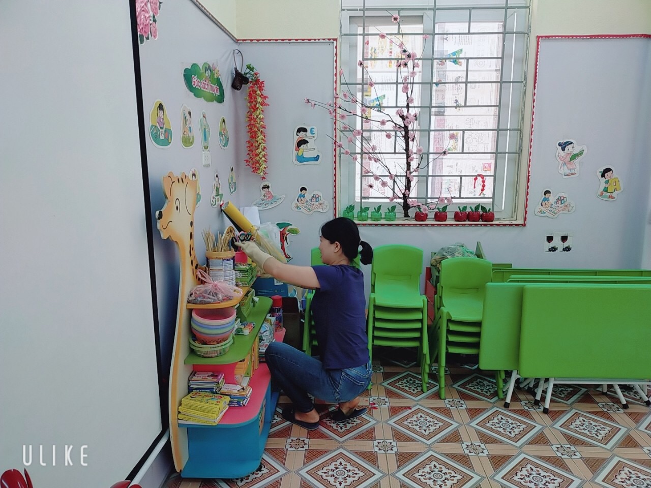 Nhà trường đã thực hiện nghiêm việc vệ sinh, tẩy trùng trường, lớp theo đúng hướng dẫn của Bộ Y tế và các cơ quan chuyên môn như: vệ sinh môi trường xung quanh, các vật dụng mà trẻ thường xuyên cầm, nắm, như: lan can hành lang, tay nắm cửa, bàn, ghế; giá, kệ để đồ dùng đồ chơi; phòng học, nhà vệ sinh…; thiết bị, đồ dùng dạy học và học liệu, bảo đảm ngăn ngừa nguy cơ lây nhiễm từ môi trường, lớp học và các phương tiện được giáo viên, học sinh sử dụng trong quá trình dạy và học.