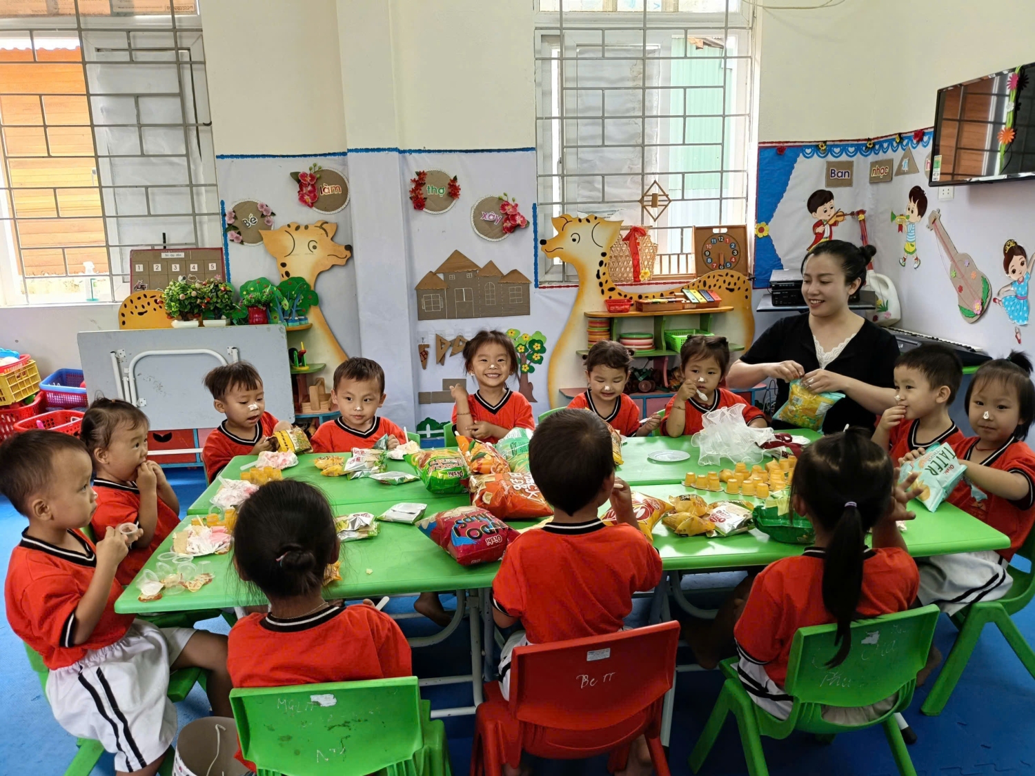 “Trưa hè gió thổi Hoa phượng lung lay Cánh hoa rụng bay Như bầy bướm lượn” Vậy là những cánh phượng đã đỏ rực, những tiếng ve kêu rộn rã báo hiệu hè về cũng là lúc báo hiệu kết thúc một năm học hăng say. Chiều ngày 23/5/2025 trường mầm non Họa Mi tổ chức lễ tổng kết năm học 2024 – 2025. Buổi lễ diễn ra với nhiều cảm xúc khó tả, nhất là các bé chuẩn bị xa mái trường mầm non, xa các cô giáo đã hằng ngày chăm sóc các em từng bữa ăn, giấc ngủ, dạy các em từng điệu múa, lời ca, nuôi dưỡng các em có một tâm hồn cao đẹp từ khi các em đang là mầm xanh tương lai của đất nước. Cả cô và trẻ đều đã để lại trong lòng nhau những tình cảm yêu thương không thể nào quên. Một năm học là khoảng thời gian không quá dài nhưng cũng đủ ghi lại biết bao kỷ niệm đẹp của cô và trò. Một năm học khép lại cũng là lúc các cô giáo nhìn lại những thành quả của mình. Những ngày tháng miệt mài bên trang giáo án, những bài giảng sáng tạo, lý thú, những ánh mắt ngây thơ hồn nhiên, những cái nhìn âu yếm của cô và trò. Tất cả đã tạo thành một dấu ấn của cô và trò trường Mầm non Họa Mi. Buổi lễ của các con được diễn ra ngay tại lớp học của mình. Các con đã rất tự tin và hào hứng cùng hát với cô những ca khúc quen thuộc, trò chuyện vui vẻ! Sau đó các con còn được nhận phần thưởng xứng đáng sau những nỗ lực của các con suốt một năm học và cùng phá cỗ liên hoan tổng kết năm học. Một năm học đã khép lại. Có lẽ đây là khoảng thời gian mà các bé mẫu giáo 5 tuổi sẽ ghi nhớ mãi mãi khi các con sẽ chia tay mái trường mầm non để chuẩn bị lên lớp 1. Buổi lễ này đã đánh dấu thời khắc kỳ diệu và long trọng nhất trong cuộc đời các con, cuộc sống đang mở ra mênh mông phía trước, các con hãy dũng cảm chọn cho mình con đường để trở thành những con người chân chính có nghĩa, có tình và giầu trí tuệ. Các con sẽ hòa nhập vào xã hội, tạo lập cuộc sống của mình và cùng chung tay dựng xây quê hương đất nước! Một năm học đầy nỗ lực và thành công đã kết thúc, chúc các bạn nhỏ có một kỳ nghỉ hè vui khỏe, bổ ích. Riêng các bạn lớp 5- 6 tuổi chuẩn bị tốt tâm thế sẵn sàng vào lớp 1 thật vững vàng. Chúc cho tập thể sư phạm trường Mầm non Họa Mi chúng ta ngày càng lớn mạnh! Dưới đây là một số hình ảnh trong buổi Tổng kết năm học- lễ ra trường cho các bé 5-6 tuổi trường mầm non Họa Mi.
