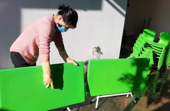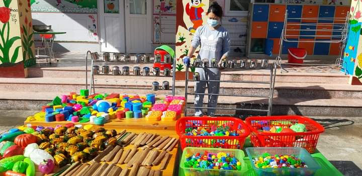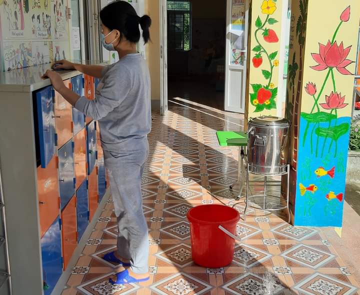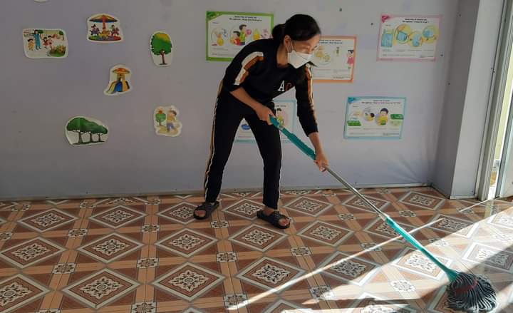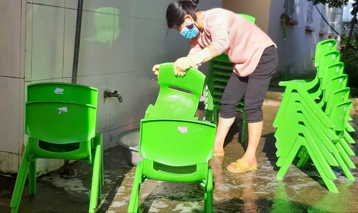 Công tác vệ sinh chuẩn bị đón trẻ đi học trờ lại sau thời gian nghỉ dịch Covid-19 năm học 2021-2022 (ngày 15/12/2022)
