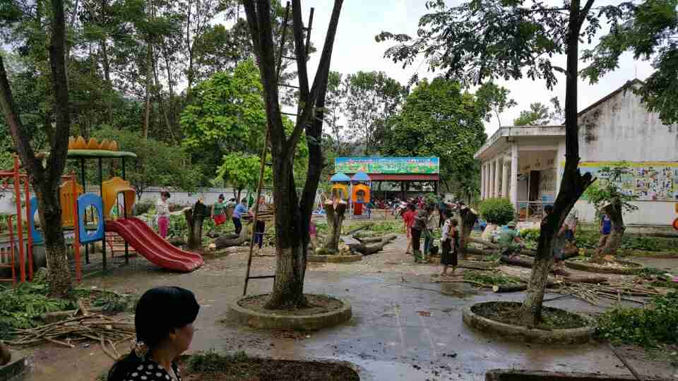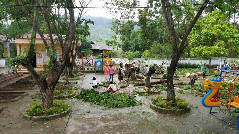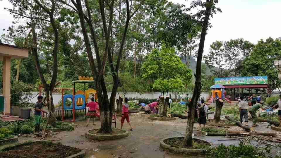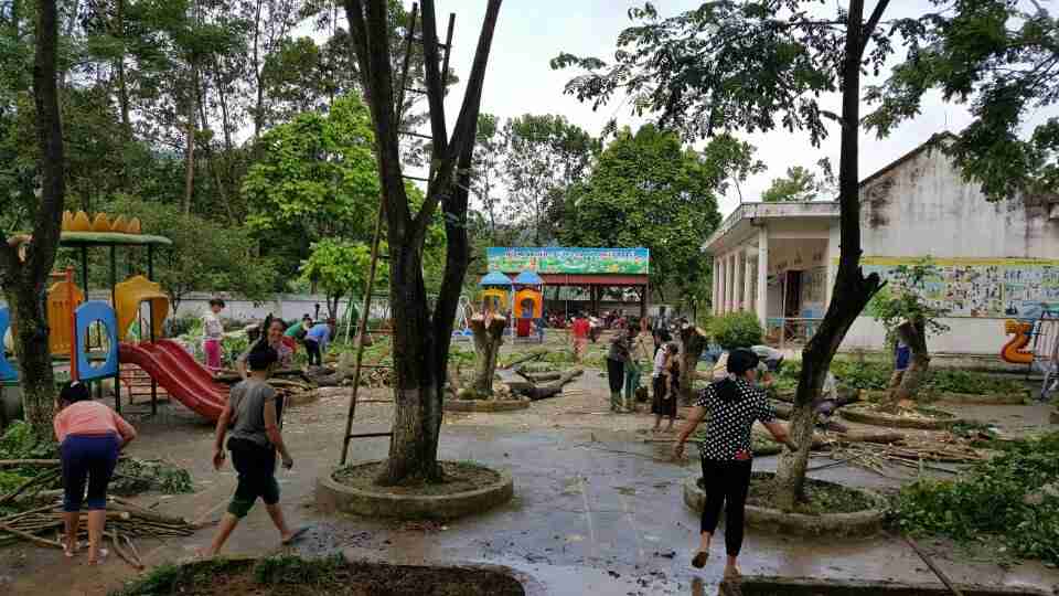 Nhà trường phối kết hợp với phụ huynh lao động vế sinh trường, lớp chuẩn bị cho năm học mố 2019-2020