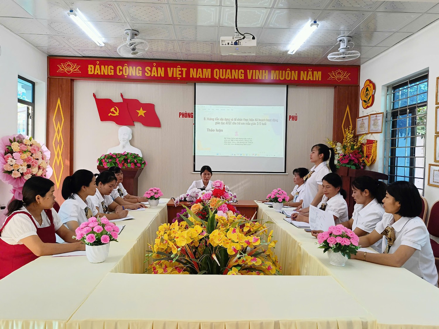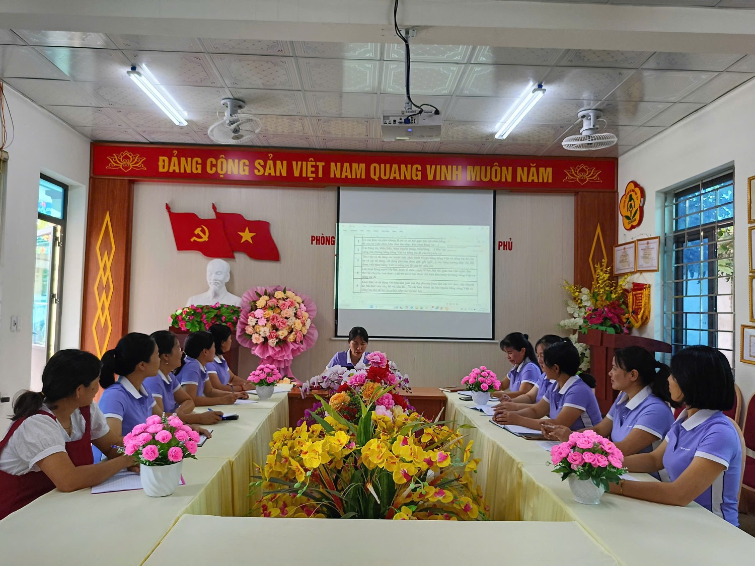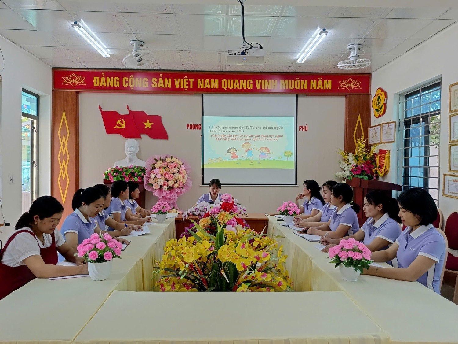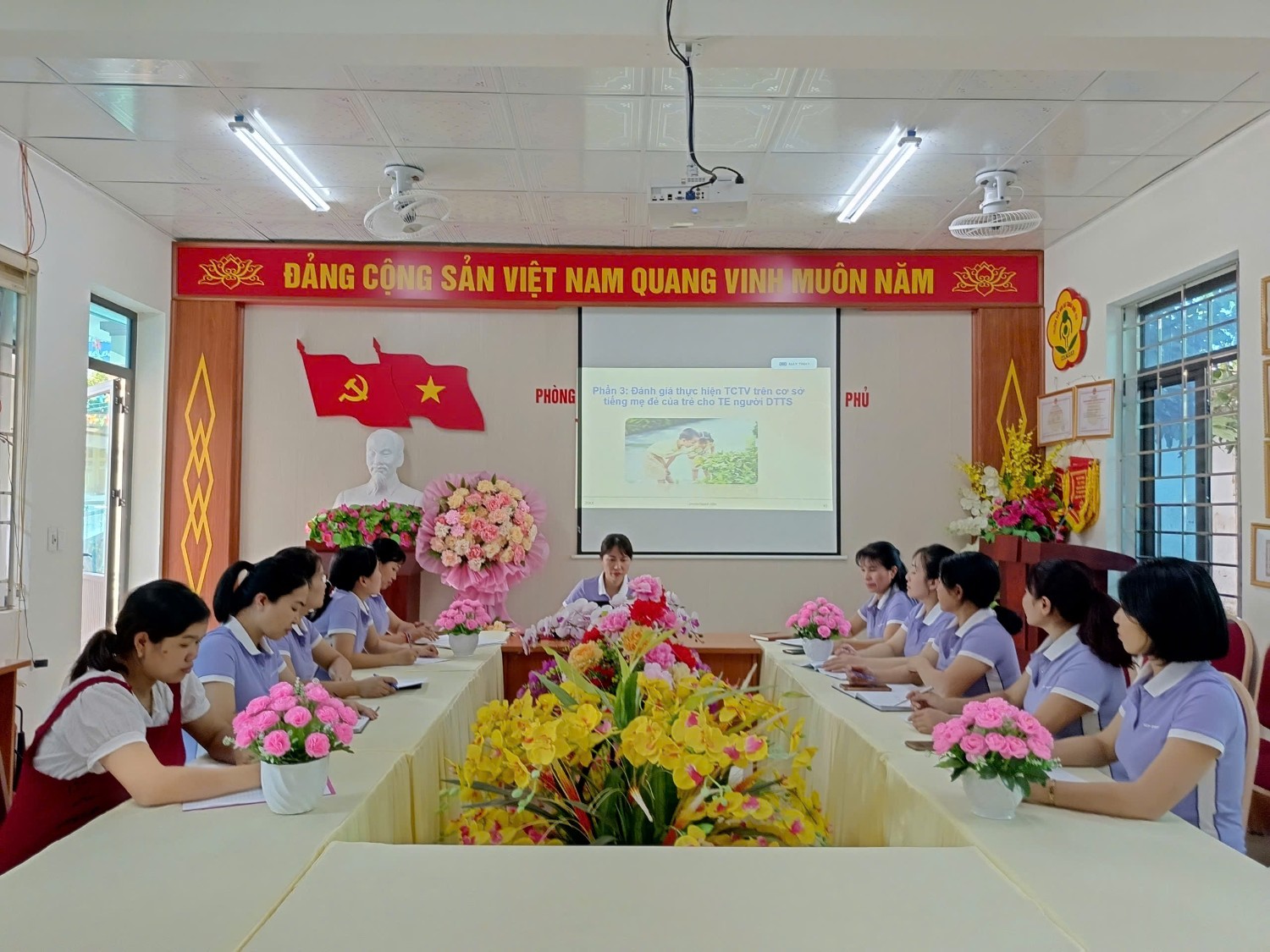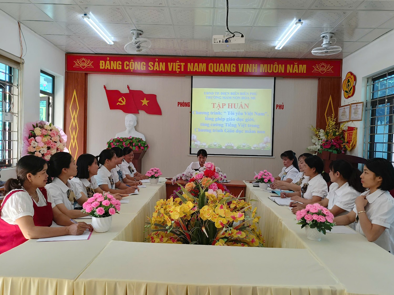 Tập huấn chương trình tôi yêu Việt Nam, lồng ghép giới, tăng cường tiếng việt của trường MN Họa Mi
