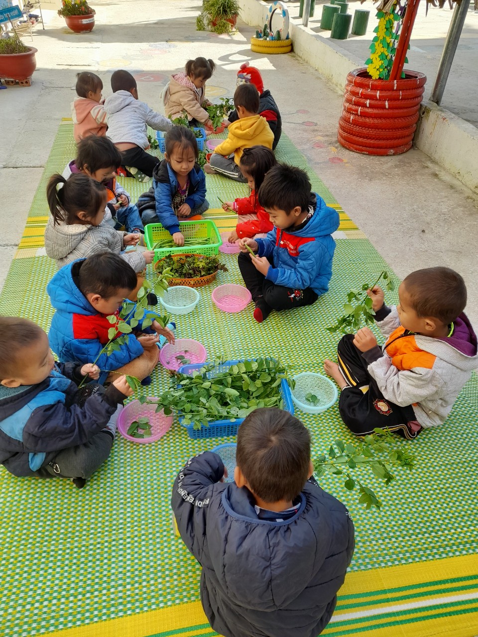 Nhặt rau là công việc đơn giản và quen thuộc hàng ngày bé thường xem mẹ làm nhưng rất ít bé được trải nghiệm thực tế. Các cô giáo lớp mẫu giáo ghép Kê Nênh  đã tổ chức buổi trải nghiệm cho các bé 1 buổi tập làm người lớn, tập làm những công việc mà bố mẹ thường làm hàng ngày..Qua hoạt động này, bé sẽ rèn luyện kĩ năng vận động tinh, khả năng quan sát và phân biệt được rau ngon và phần rau hư bỏ, rèn luyện tính kiên trì khi làm việc. Đặc biệt bé sẽ phát triển tình cảm gia đình khi được trải nghiệm công việc hàng ngày của mẹ. Từ đó giúp trẻ hình thành sự biết ơn, thấu hiểu , sẻ chia và yêu thương bố mẹ, những người thân yêu của trẻ nhiều hơn..