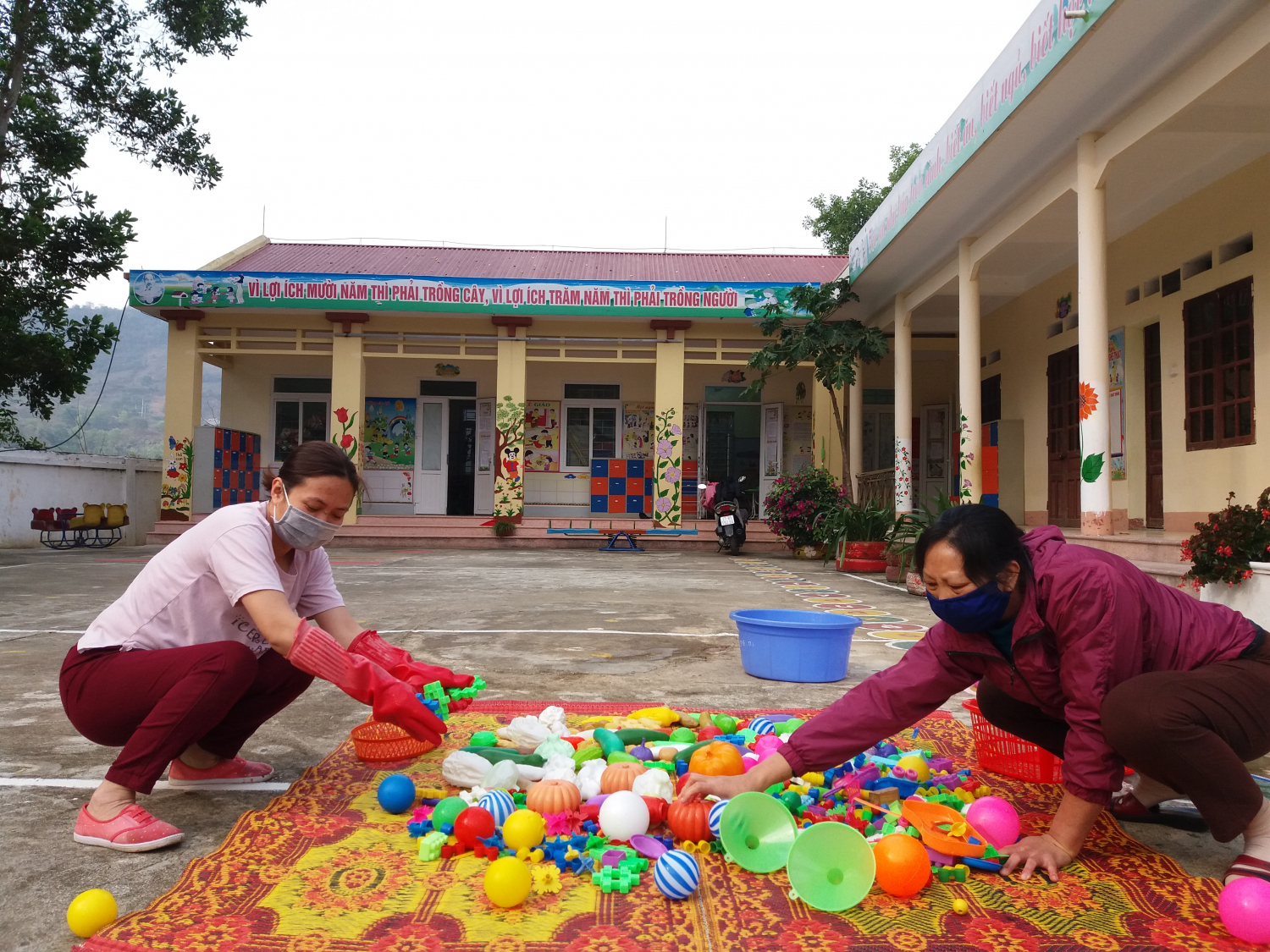 Phối hợp với y tế xã Thanh Minh làm tốt công tác vệ sinh trường lớp đảm bảo khuôn viên trường, lớp học thông thoáng, sạch sẽ. tiêu độc khử trùng sàn nhà lớp học, đồ dùng đồ chơi thiết bị dạy học