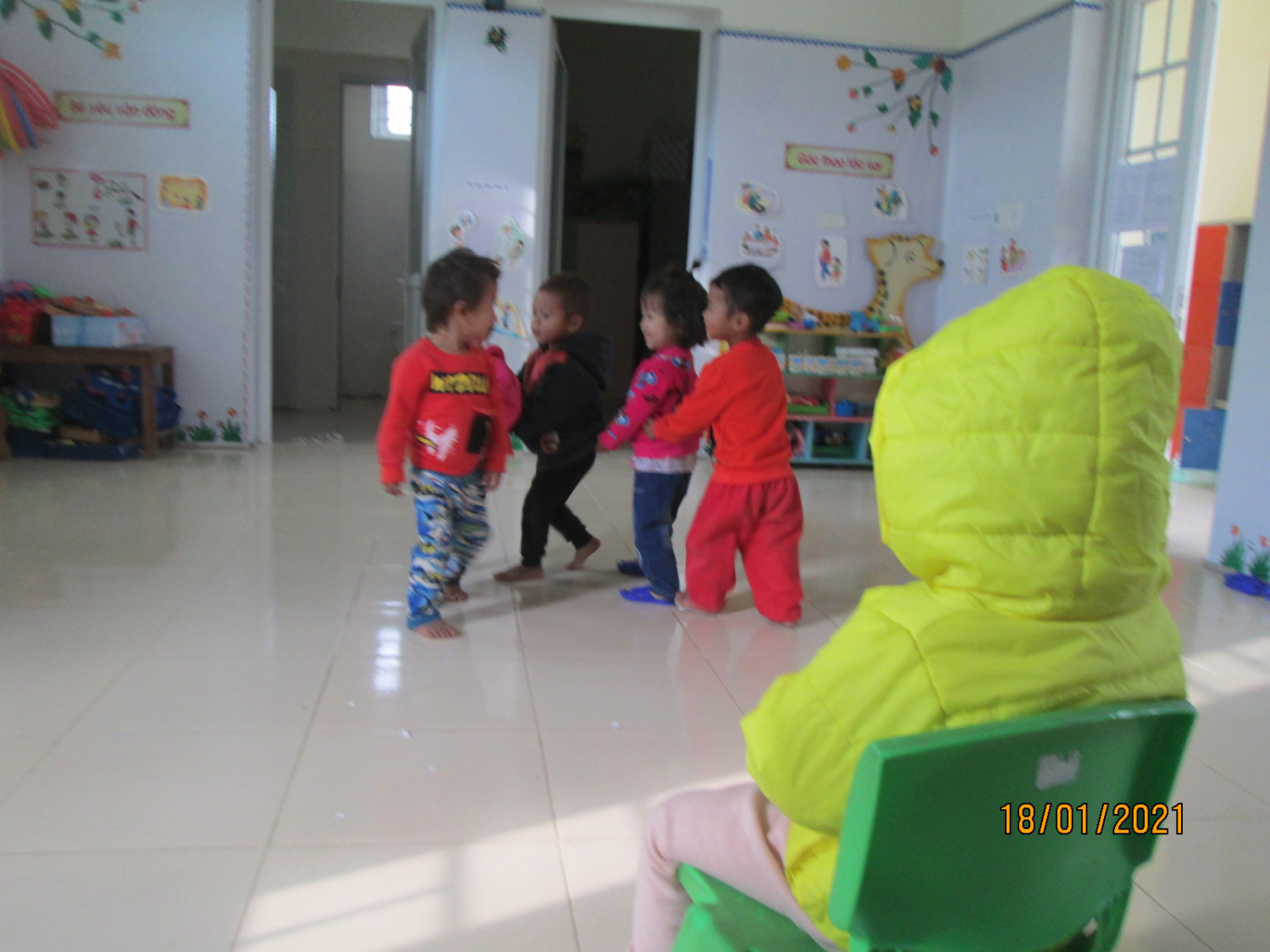 Mặt khác ở điểm trường cũng đã rèn các con làm việc theo nhóm, đoàn kết và kỷ luật, chơi vui vẻ bên nhau qua các trò chơi dân gian như rồng rắn lên mây, kéo cưa lừa xẻ, luồn luồn cổng dế, kéo co… Trẻ đến trường được chơi, được học bên các bạn “mỗi ngày đến trường là một ngày vui”