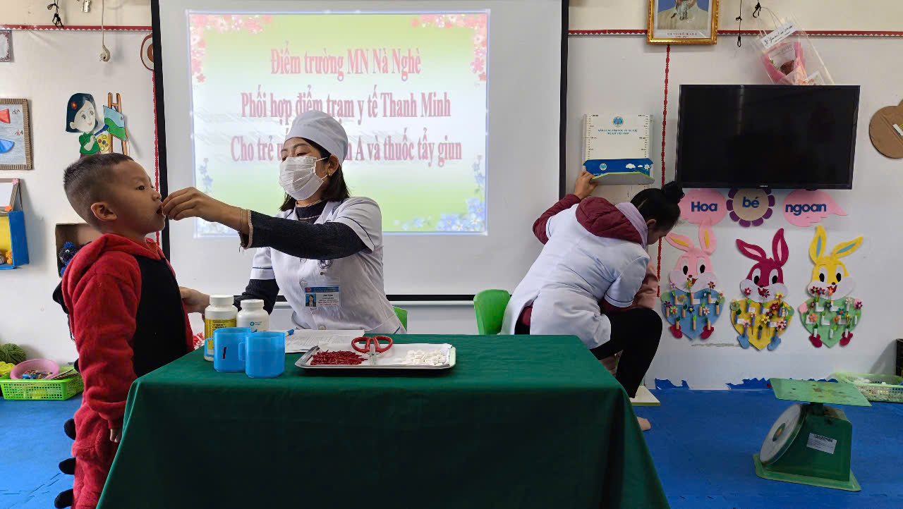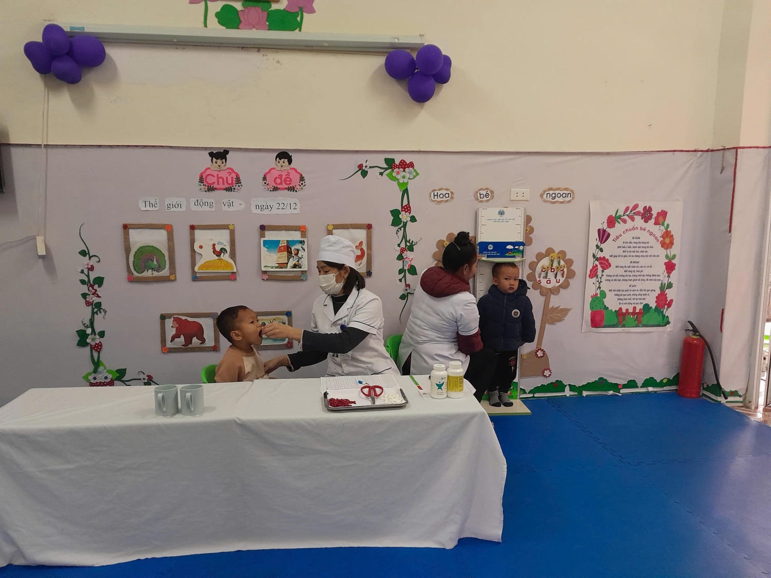 + Tổ chức cho trẻ uống vitamin theo đúng liều khuyến cáo và danh sách của từng lớp.