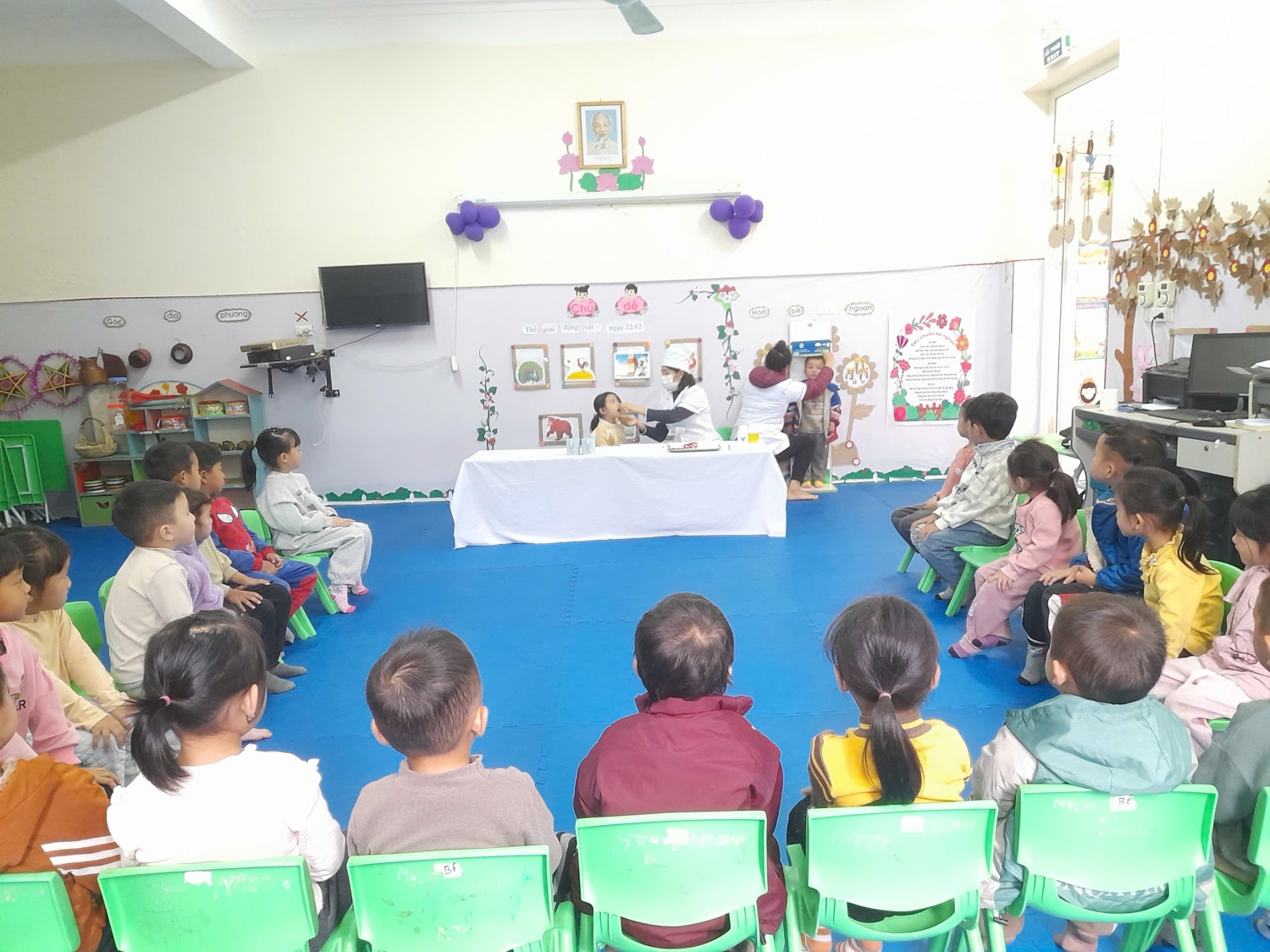 Sau đây là một số hình ảnh tiêu biểu trong hoạt động khám sức khoẻ định kỳ cho trẻ của trường mầm non Họa Mi.