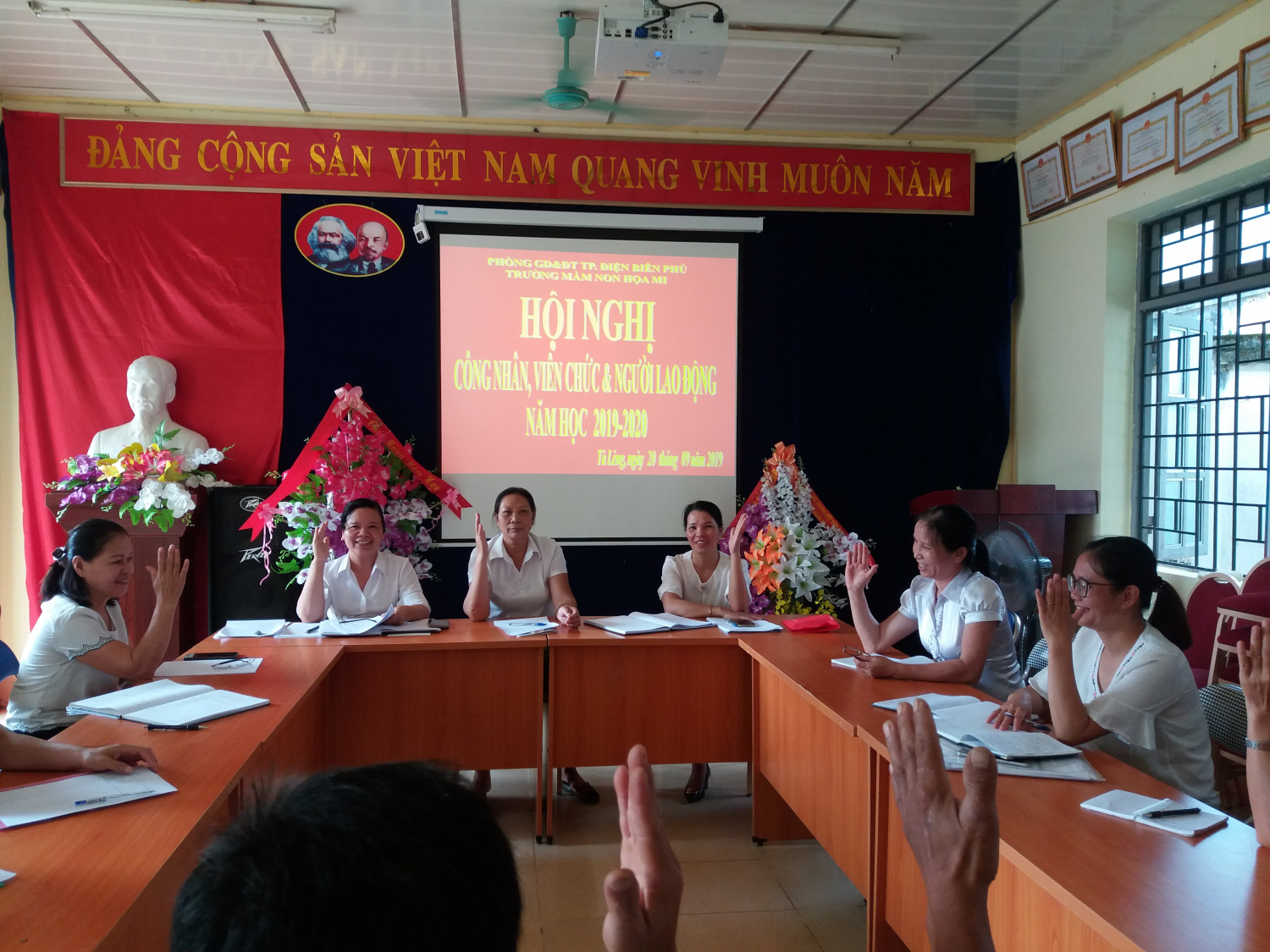 Hội nghị đã thống nhất các kế hoạch, chỉ tiêu đề ra, hứa quyết tâm thực hiện bằng biểu quyết 100% ý kiến nhất trí và đã kí giao ước thi đua. Hội nghị cán bộ, công chức, viên chức trường mầm non Họa Mi năm học 2019 – 2020 đã diễn ra thành công tốt đẹp. Hơn bao giờ hết, mỗi giáo viên, nhân viên nhà trường càng hiểu rõ trách nhiệm của mình, vượt trên những khó khăn về đội ngũ với tâm huyết, lòng nhiệt tình, năng lực lãnh đạo sáng tạo của Ban giám hiệu nhà trường, tinh thần đoàn kết, sự quyết tâm nỗ lực của mỗi cán bộ giáo viên, công nhân viên, trường mầm non Họa Mi vững tin sẽ có một năm học mới gặt hái nhiều thành công rực rỡ, hoàn thành thắng lợi mục tiêu kế hoạch của năm học. /
