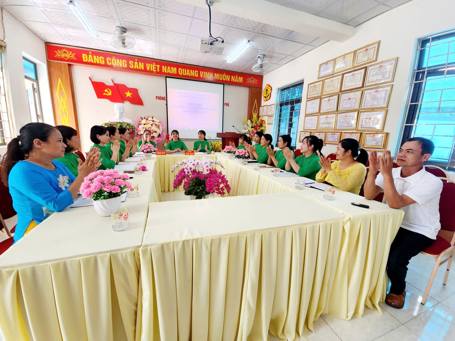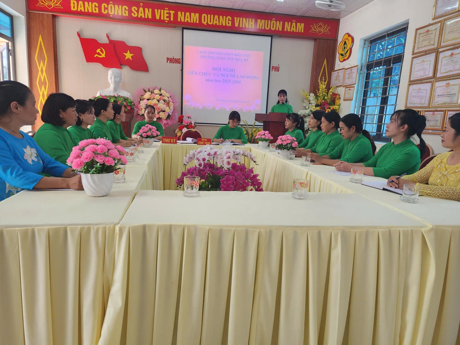 Chiều ngày 19/09/2025 trường Mầm non Hoạ Mi, phường Điện Biên Phủ đã tổ chức Hội nghị viên chức và người lao động năm học 2025 -2026. Đây là dịp quan trọng để toàn thể viên chức, người lao động trong nhà trường cùng đánh giá, nhìn lại những kết quả đã đạt được trong năm học 2024-2025, đồng thời đề ra phương hướng, nhiệm vụ và giải pháp thực hiện cho năm học 2025-2026